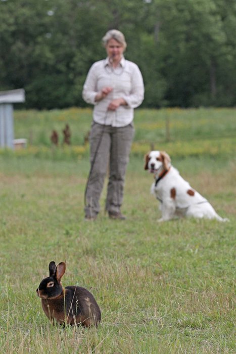 | Hunden skal være klar til at kunne komme direkte i kaningården. |